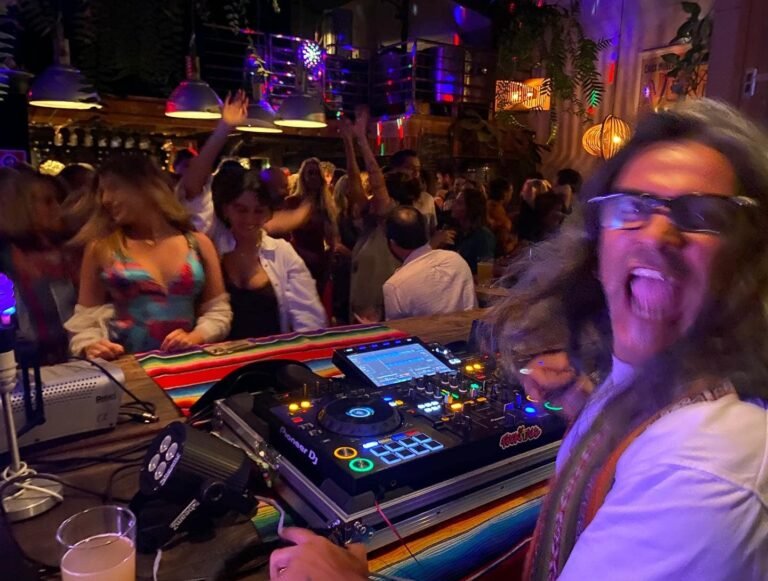 Seus sets de DJ são ecléticos e versáteis, com um repertório intuitivo para cada lugar, sistema de som e público.