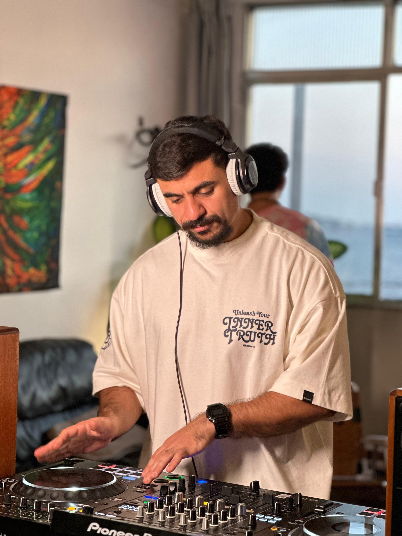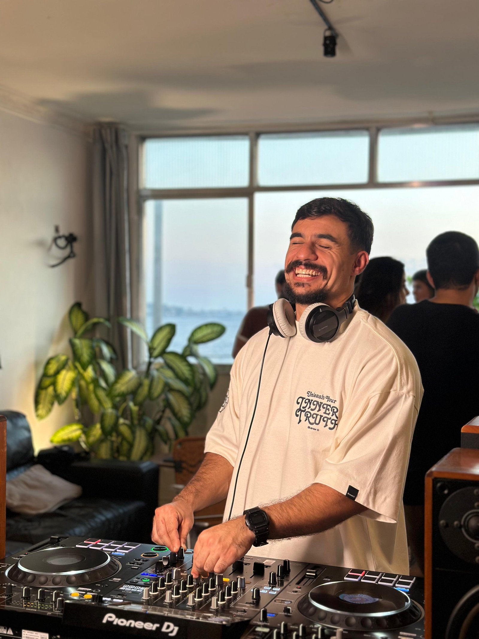 Inside and outside the DJ booth, his light and communicative energy reflects the spirit of the music he plays: grooves that connect people, celebrate the moment, and transform the dance floor into a space of collective vibe.